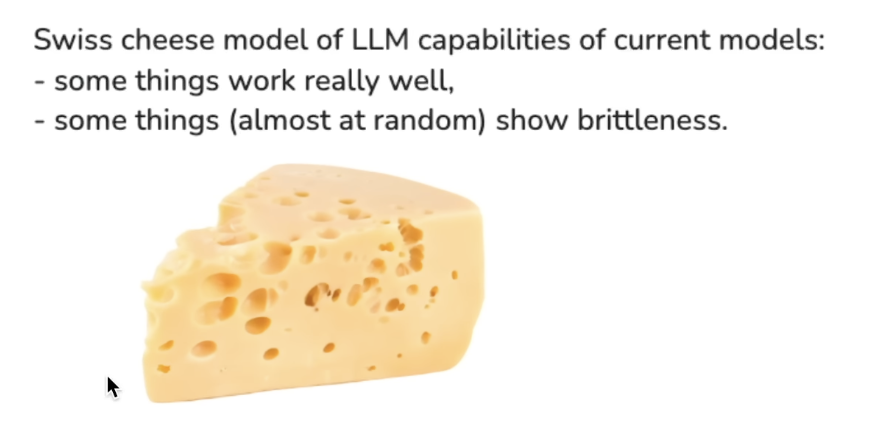 - They are like Swiss cheese — bad at certain things in an unpredictable way. There are holes in what they can do.
